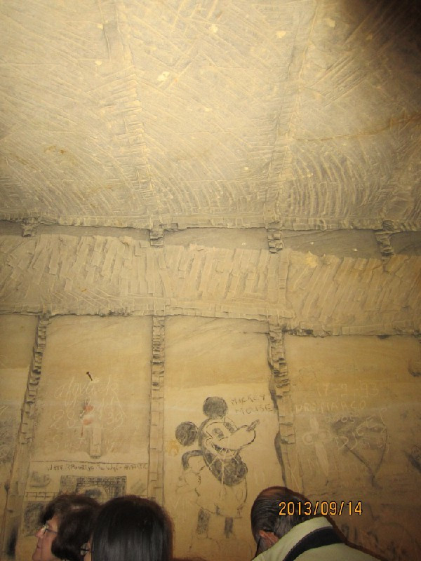 吃过午饭,我们徒步向圣皮特要塞前进。西北方向走了将近30分钟,到达要塞买票之后,稍微等待之后我们就可以跟着导游一起进入圣彼得堡洞窟。这里必须由领队带入,因为这洞窟里没有任何的采光和光源,全靠导游手里的煤油灯。从洞口开始,导游就给我们讲解洞窟的来源,墙上的壁画,每个分洞窟的作用,甚至还和我们想象了一下以前的人们在这里避难的场景。快到终点的时候,导游突然跟我们说让我们体验一下特别的感觉,他让我们每个人右手扶墙,左手搭在前面人的肩膀上,然后导游把灯熄灭了!!一下子完全的漆黑,什么都看不见,只能跟着前面的人,右手摸索着向前走。大家小心翼翼,只有前进的声音。走了大约五分钟,终于看见洞口的光亮了,大家终于常出一口气,感慨颇深,犹获新生。