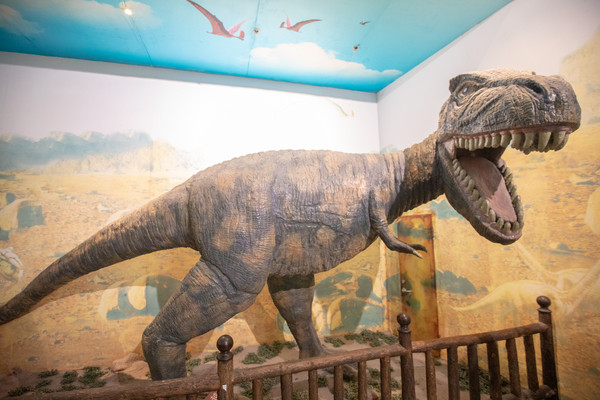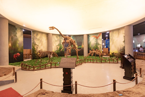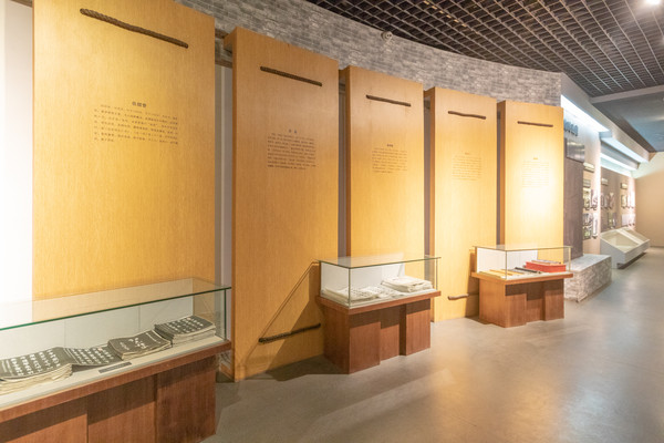 博物馆的大厅陈列着几座恐龙化石雕塑,神采奕奕,即便在时间的洗礼下已经不复当年模样,依旧无法掩盖其高傲的气势。四周的墙壁绘画了一幅幅原始森林的画面,与雕塑完美呼应,将气氛渲染到极致。移步来到历史文化厅,画面突变,原先的简约风消失殆尽,原木色陈列板错落有致,温暖的射灯将整个空间照的柔软,玻璃柜中的古籍文书历久弥新。