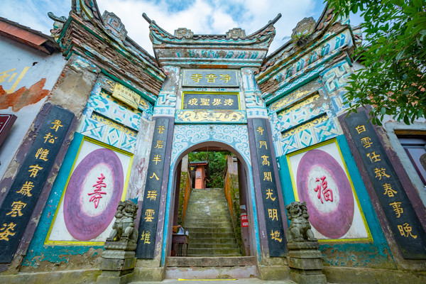 作为巴蜀的佛教圣地,净音寺已有千年历史,寺庙的门头在风雨的璀璨下略显斑驳,但精致的刻画、讲究的造型却不改颜色,足以见证古寺的地位。