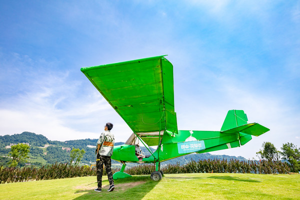 景区内藏着一座偌大的直升机雕塑,明亮的绿色企图掩盖草地的光芒,翱翔的姿态更透露出无限威仪,似乎在与盛夏叫嚣。