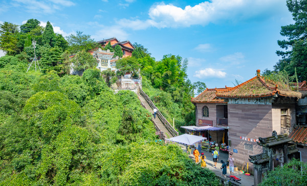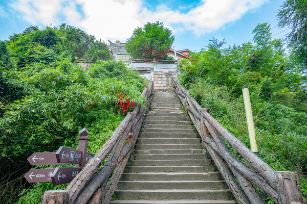 沿着古道一路而上,四周郁郁葱葱,偶闻猿啼鸟鸣和清泉滑落石壁的声音。驻足远观,层林尽染,翠影重嶂,仿佛天降绿锦,让人备受洗涤。