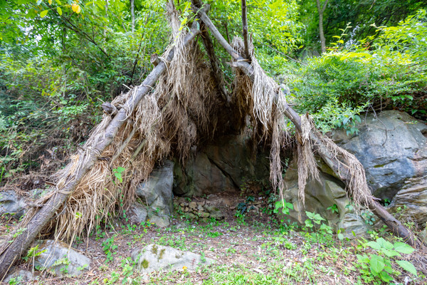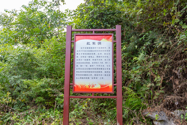 让人眼前一亮的是青山脚下一面沧桑的石墙,墙面画着鲜红的五星红旗,旧时的标语历历在目,石墙前碎石堆叠,浑浊的河水穿梭而过,即便在这样恶劣的条件下,那面象征着红军精神的红旗却历久弥新,让人难以忽视。移步来到红军洞,让人不禁鼻头一酸,一个由破旧稻草搭建而成的小洞就这样赫然出现在我眼前,与四周的绿树掩映形成强烈的视觉反差,荒凉而贫瘠,让人不由得对红军战士竖起大拇指。