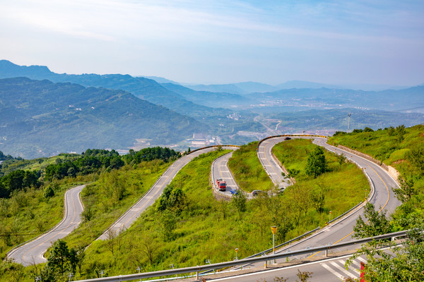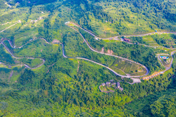 景区依山就势,无数条公路盘旋其中,宛若一条条银色的玉带,镶嵌于碧翡之中,相互映衬,形成一道靓丽的风景线。