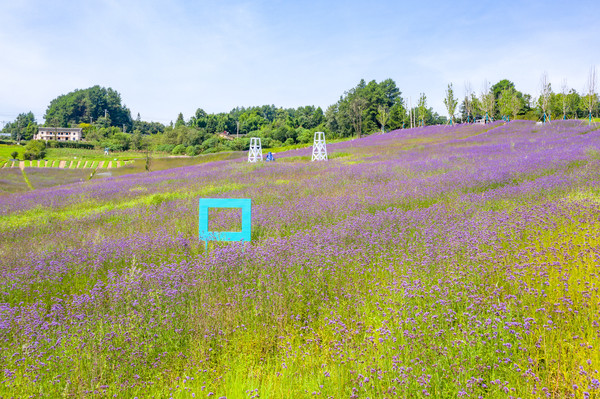 此时正是向日葵和马鞭草盛放的季节,一个积极热情,一个清新可人,相互衬托,成为这个夏日最忠诚的伴侣。景区的绿化面积很大,绿草如茵,大片大片的绿色霸占你的眼球,甚至让人产生春意阑珊的错觉。