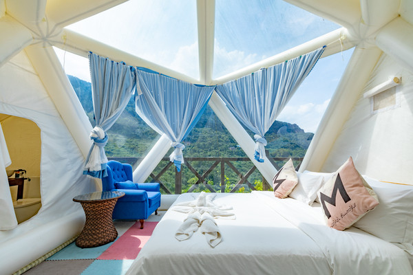 让人眼前一亮的是,景区还设有帐篷露营地,星星、草地、湖水、帐篷,光是想想便觉得幸福之意油然而生。这里的帐篷房风格迥异,既有原木色居家低调风,也有北欧精致简约风,无论是带着孩子的幸福妈妈,还是崇尚自由的单身男女,在这里,总能找到属于你的完美小屋。
