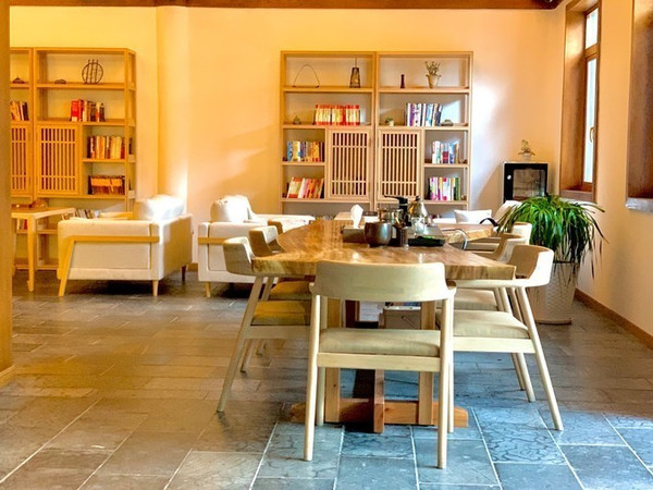 大堂还有茶具和休息室,传统中式文化的感觉。