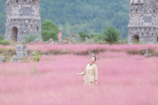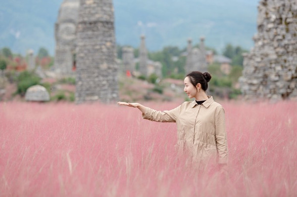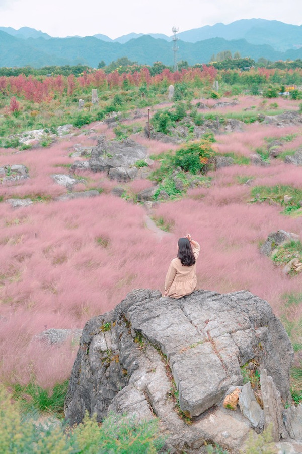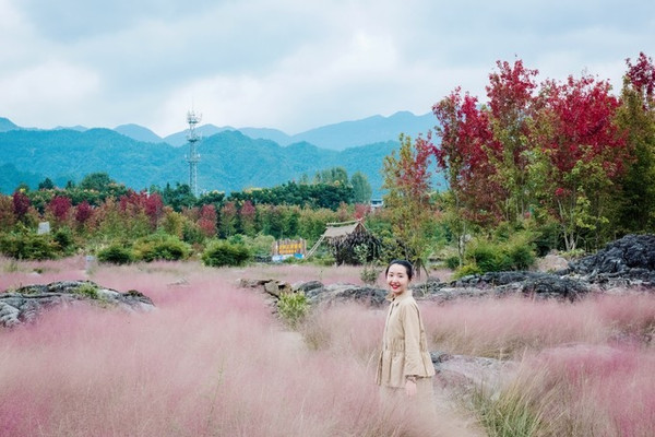 如果秋天想要看到粉色,酉阳一样可以给你一片粉黛草,就在叠石花谷。每年秋天,是酉阳叠石花谷最美的季节,每年的9月份到11月份都是粉黛草的最佳观赏时期,粉色的云霞飘散在绿草之上,如梦如幻。