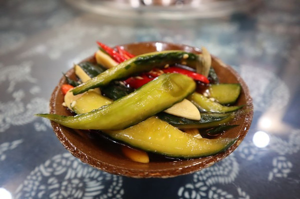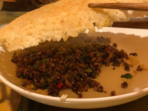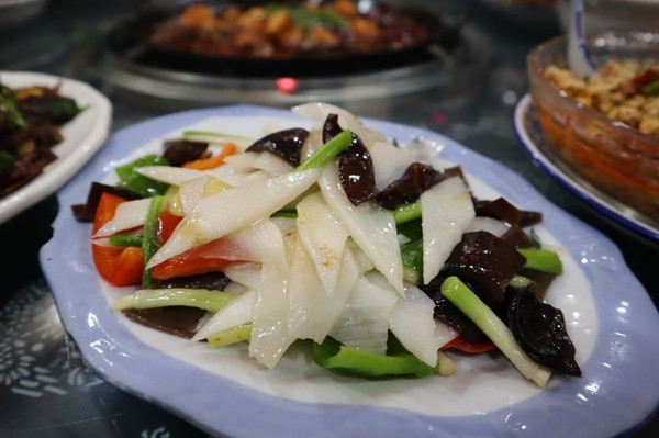箜过的洋芋饭好香,还有送的一小碗泡黄瓜也是他家特色,每桌送一叠,要追加就要加钱了。