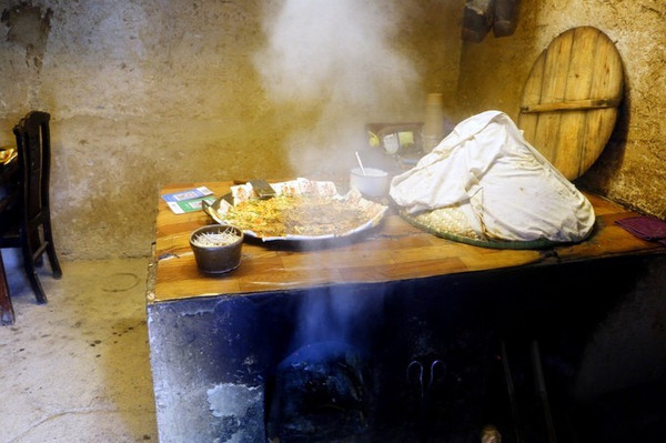 听本地人说,我们选的这家鼎罐饭品牌是酉阳现目前最正宗的一家鼎罐饭店,常常爆满,有时还需要提前定位。这家鼎罐饭店没有大厅,全部是以火铺为主的包间,包间内都是茅草凳、矮桌子,随后,点菜点饭,菜是土家特色菜,饭是柴火鼎罐饭。