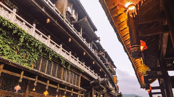 串联全镇的青石板街,青幽如玉;街边林立着古香古色、临崖高挑的木制吊楼;被赋予了美丽传奇的锦楼、织女楼、鸳鸯楼,一切都岁月静好。深幽的青石板街道,搭配临江而建的木质吊脚楼,被誉赞为“绝壁上的音符”。
