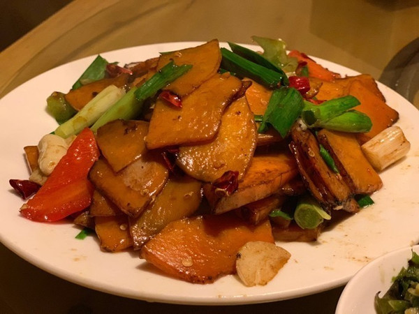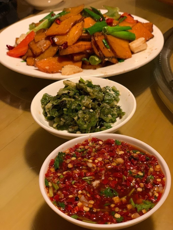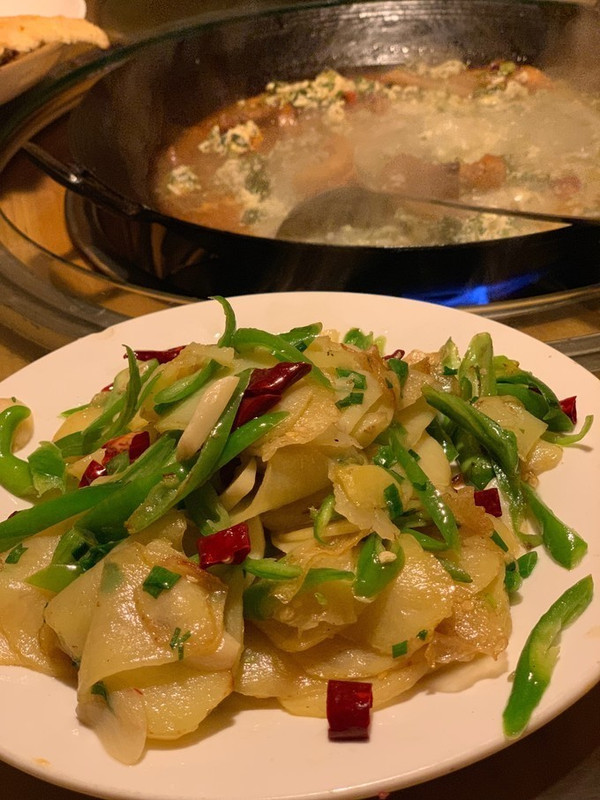 还有特色炒南瓜 ,第一次吃到切的这么细一片一片的南瓜,我都没吃出来是南瓜 那么脆。还有锅巴下面的咸菜, 炒土豆片太好吃了 ,我觉得那一盘都是我一个人吃完的。