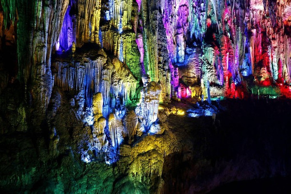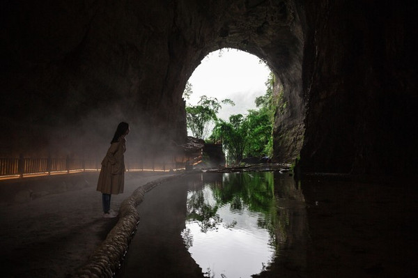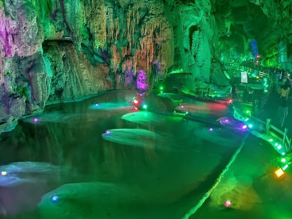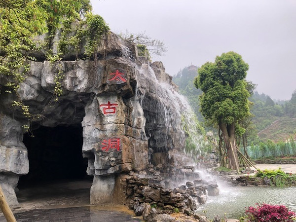 太古洞,简单来说就是溶洞,被称为“桃源秘径”。溶洞里就是各种形态各异的钟乳石。长约3公里,距今已经有3亿多年历史,至今仍在不断生长发育。这个太古洞据说是古代咸阳儒生躲避官方搜捕的最后藏身之地(原名伏羲洞),典型中国南方喀斯特溶洞。洞府体量庞大,气势磅礴,有曲折的廊道,险峻的峡谷,景观秀丽。洞内钟乳挺拔,石笋丛生,石幔高挂,石柱巍峨,经过灯饰精心点缀的溶洞,五彩缤纷,如梦似幻,堪称“地下桃花源”。太古洞大概需要花1小时的行走时间,太古洞天的出口处,有“天坑学之父”朱学稳的题词“世界奇观,地下石林”。