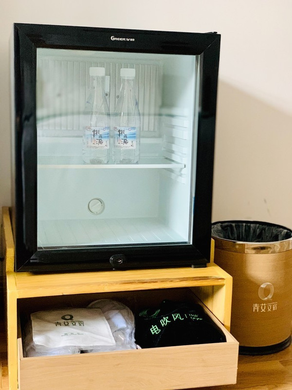 小冰箱里有两瓶免费矿泉水,还提供充电线。有免费Wi-Fi。