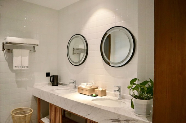 卫生间的灯都是人走进去自动亮灯,不需要再有“按”的动作。提供一次性拖鞋和洗澡用的塑料拖鞋。洗漱用品齐全。还提供浴袍。