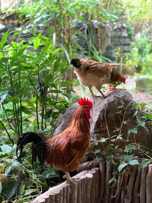 跑山鸡自由自在的在景区里快乐生活。