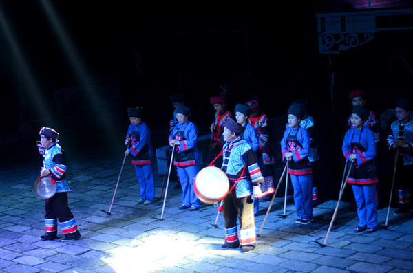表演者都是穿着原汁原味的土家族服装,载歌载舞。