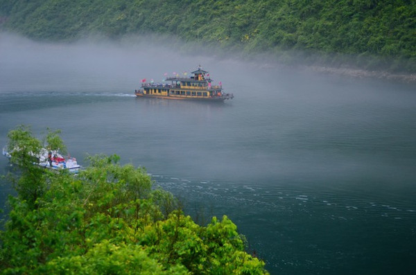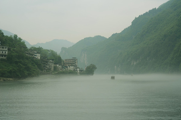 乌江上空薄雾初散,一叶扁舟在碧绿的江上微微荡漾...龚滩古镇完全离不开这一乌江绿。