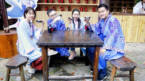 在龚滩,也能吃到土家族的美食,比如滩酿豆腐,龚滩绿豆粉,龚滩烧白,荞麦粑粑,品宜居茶,喝苦荞酒。