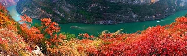 当然,到巫山一定要选择在11月份左右去看红枫,漫山遍野的红枫映衬下的小三峡确实很美。