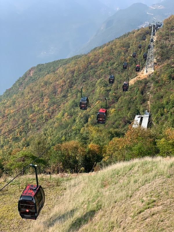 我们走的是一条另辟蹊径的路线,就是错峰游,从山顶到山脚,再坐船。所以,去尝试了一下新开的索道。单程75元/人,一般没人坐来回哈。索道也不长,也就是山顶一小段。