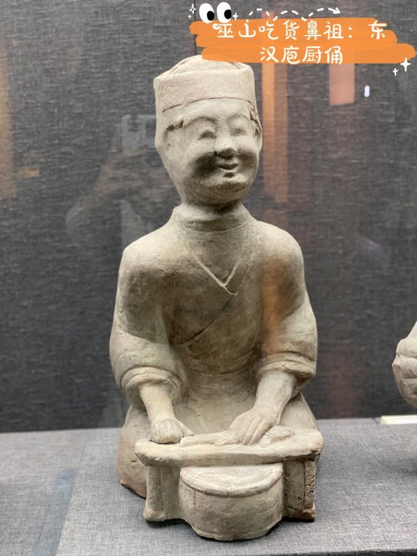 2.镇馆之宝:东汉庖厨俑,巫山吃货的鼻祖,2000前巫山就开始制作烤鱼,从陶俑表情来看今天能吃到烤鱼,欢喜之情溢于言表。