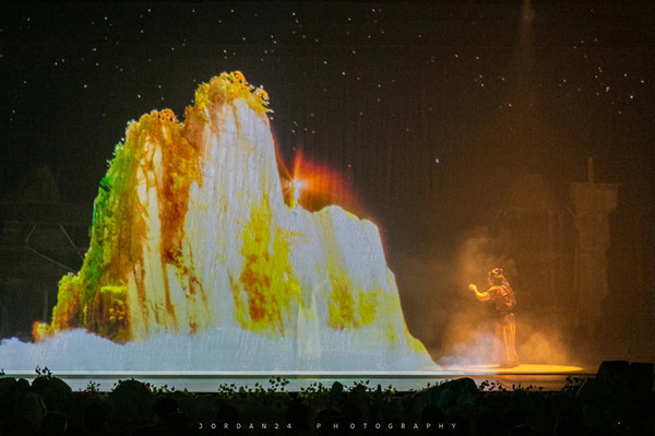 所以整个演出一共分为四个章程,按照常规影视舞台剧故事情节套路:爱情萌芽👉危险产生(矛盾激化)👉面临抉择👉牺牲奉献。确实跟我之前看过的很多旅游胜地演出不一样,不完全依托舞美、舞蹈写意剧情,生活类对话和以对唱形式演绎剧情,结合拟人动物唱跳,游戏二次元打斗,确实看得出来投其年轻人喜好,综艺感较强。