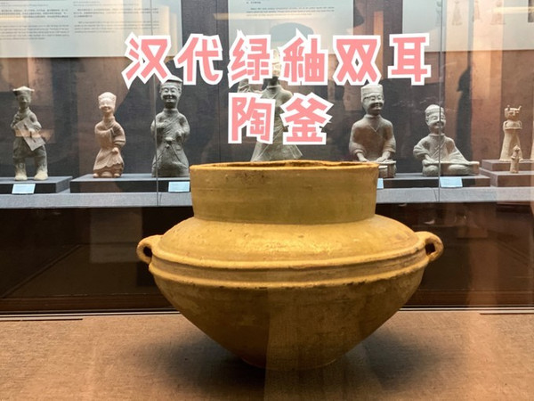 4.镇馆之宝:汉代绿釉双耳陶釜,釜在古代是一种炊具,相当于现在人们煮饭用的锅。