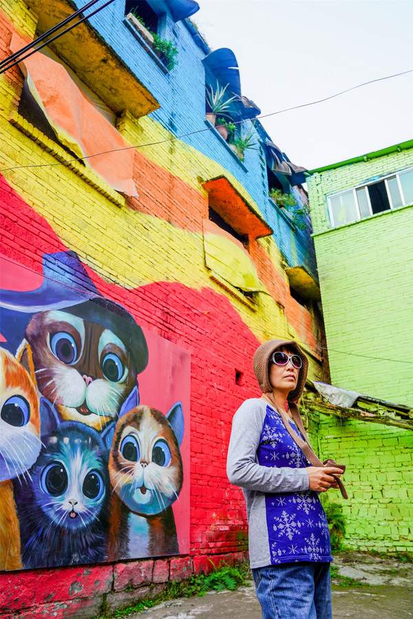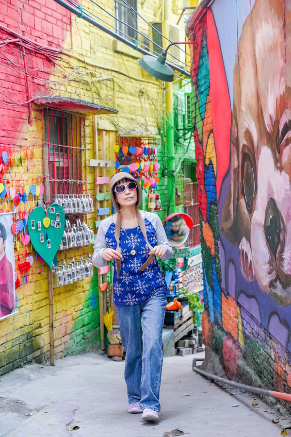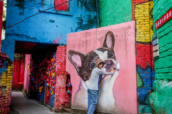【马房湾七彩巷】网红打卡新地标。七彩巷是由几排老旧房子涂鸦而成,红的、绿的、蓝的、黄的,各种色彩相互碰撞,给这条小巷增添了许多生趣。瞧,鹅黄色墙面上,趴着一只大眼萌猫,调皮的它仿佛撞破了白色墙纸探出头来张望;而那只处在小巷转角处最显眼位置的法国斗牛犬,正仰着头张望着前来合影留念的小姐姐,正是它这一幅可爱模样,吸引了好些游客的注意;这边紫色墙面上,还有一只贪吃的沙皮犬,瞧见勺子里的食物,口水已经滴起来好长。这些大胆明快的色彩,鲜亮清新的气氛,走在里面,恍若闯进了彩虹的世界,吸引眼球的同时,仿佛心灵也跟着清爽了一番。地址:沙坪坝区马房湾66号江湖菜旁边 拍照出片指数:★★★★