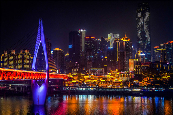 【千厮门大桥夜拍】拍摄洪崖洞,站在千厮门大桥上是个绝佳的位置。坐轻轨到千厮门大桥的另一端“大剧院站”,下车即可走到大桥,上桥并走到洪崖洞上方拍摄。拍照出片指数:★★★★★