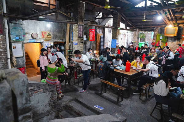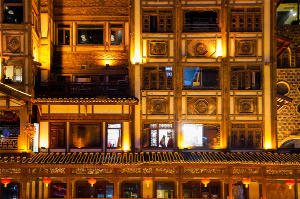【洪崖洞“重逢1980”街区】以具有巴渝传统建筑特色的“吊脚楼”风貌为主体,通过分层筑台、吊脚、错叠、临崖等山地建筑手法,把餐饮、娱乐、休闲、保健、酒店和特色文化购物等六大业态有机整合在一起,形成了别具一格的“立体式空中步行街”,成为具有层次与质感的城市景区、商业中心。“重逢1980”街区,以20世纪八九十年代重庆市井生活为主题重新打造,总建筑面积约3100平方米,艺术化展现年代生活场景区、年代人物角色演绎区和年代互动体验区等。拍照出片指数:★★★★