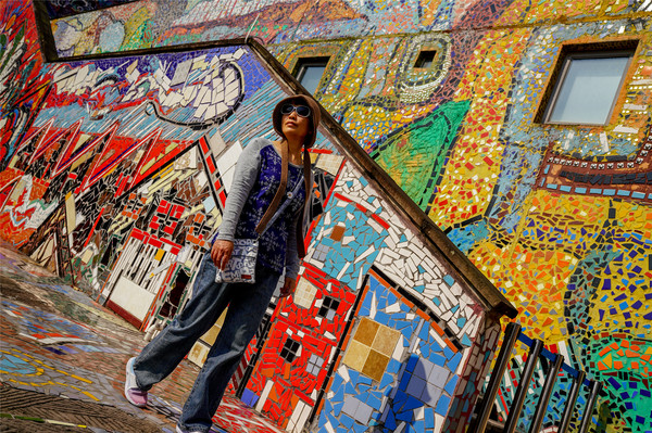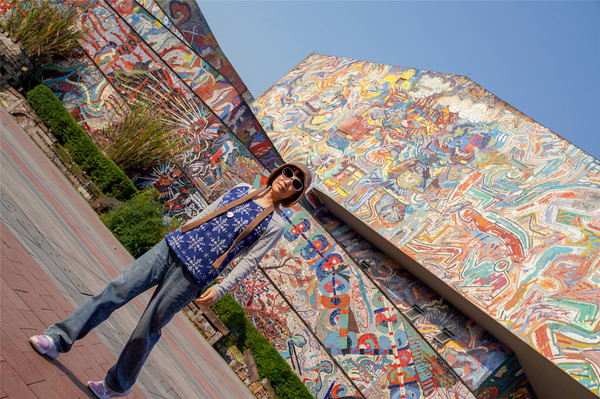 【罗中立美术馆】所有建筑的外立面,用无数块彩色的碎瓷砖一块块拼起来的,而不是油彩,这些瓷砖全部是川美到各个工厂里去收购的废弃瓷砖。外墙面满满覆盖着鲜艳、跳跃、灵动的色彩和图案,这些图案有动物、植物、人物、建筑,有写实的、也有抽象的。在外墙上连成一圈起伏跌宕的画卷,这种震撼的感觉,你一定要在现场才能体验到,像这样全部被彩色图案覆盖的美术馆,在世界上你可能找不出来第二个。美术馆的外墙壁也是一件巨大的艺术品。地址:川美沙坪坝校区 拍照出片指数:★★★★★