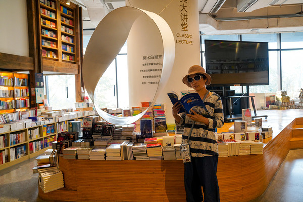 【精典书店】位于东原1891时光道D区,占地1600平方米,分为上下两层。从书店一楼入口处,经过古朴典雅的木质楼梯,就进入到了“吊脚楼”设计的书店二楼主体部分,大有“曲径通幽处”的意境。坐在古希腊柏拉图学院风格的半圆形梯级上,你会发现莫比乌斯环、克莱因瓶、超级立方体等科学装置也和每一本经典书籍一起,都安静地陪你在这里。虚度最美好的时光,从东原1891时光道的精典书店开始。拍照出片指数:★★★★