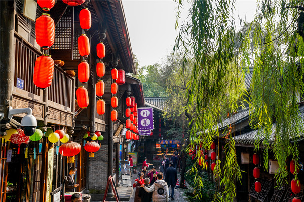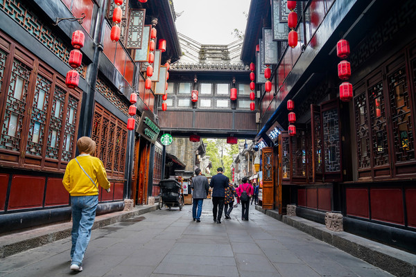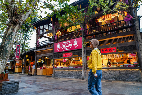 【锦里】是一条仿古商业街,是成都人气最旺景点之一,也是成都武侯祠博物馆的一部分。在这里,你可以欣赏捏泥人、摆糖画的手艺,也可以逛逛极富三国特色的店铺。街里还有各种四川特色小吃,各种茶楼、咖啡馆、酒吧、客栈等随时可落座。黄昏时分,锦里会亮起灯,颇有韵味,适合拍照游玩。拍照出片指数:★★★★