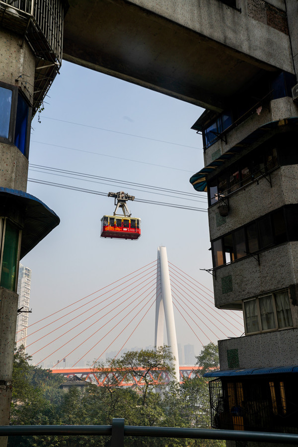 【重庆单轨2号线李子坝车站】是中国第一座与商住楼共建共存的轨道交通(跨座式单轨制式)高架车站,于2004年3月建成,占地面积3100平方米,建筑面积6000平方米。该站位于嘉陵江南畔的李子坝正街39号商住楼6-7层,因其“单轨列车穿楼而过”成为蜚声中外的“网红车站”。乘2号线临江门-佛图关一带,在车头或车尾,都有大玻璃窗供游客拍视频,如同城市过山车。这里拍视频的出片指数:★★★★★