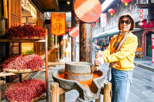 【磁器口古镇】曾经"白日里千人拱手,入夜后万盏明灯"繁盛一时。巴渝文化、宗教文化、沙磁文化、红岩文化和民间文化,各具特色。一条石板路,千年磁器口,是重庆古城的缩影和象征,被赞誉为"小重庆",磁器口古镇开发有榨油、抽丝、制糖、捏面人、川戏等传统表演项目和各种传统小吃、茶馆等,每年春节举办的磁器口庙会是最具特色的传统活动,吸引数万市民前往参与。2号线轻轨直达,注意要上午早一点游览,否则人挤人。拍照出片指数:★★★★
