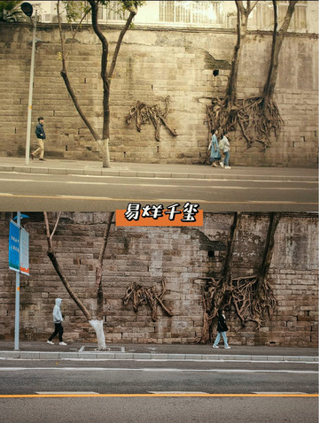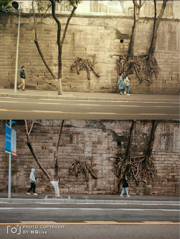 中山 四路沿途有很多的黄桷树,黄桷树是 重庆 的市树,生命力顽强,可以从墙壁的石缝中蹦出来。