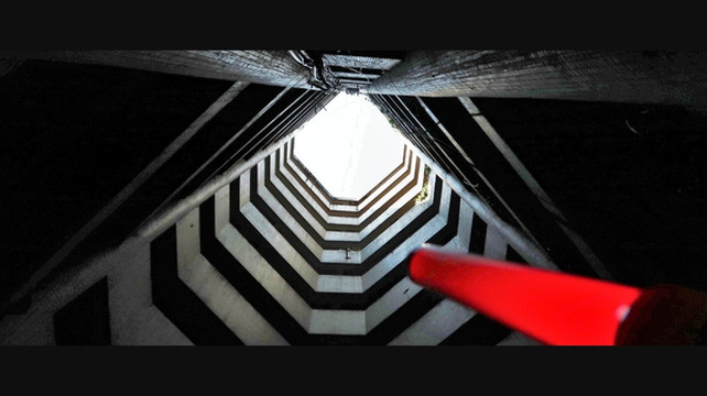 入口进去就在整个筒子楼的中上层了,八边形的井状建筑,老旧的楼梯,到处都是时光的痕迹。