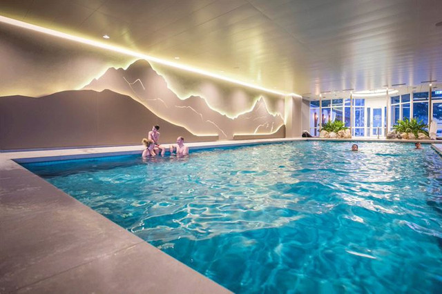 酒店的BelAqua温泉区域提供了一系列放松身心的设施:室内泳池、水疗池、芬兰桑拿、冰川蒸汽浴以及户外盐水按摩池,让您在大自然的怀抱中彻底放松身心。