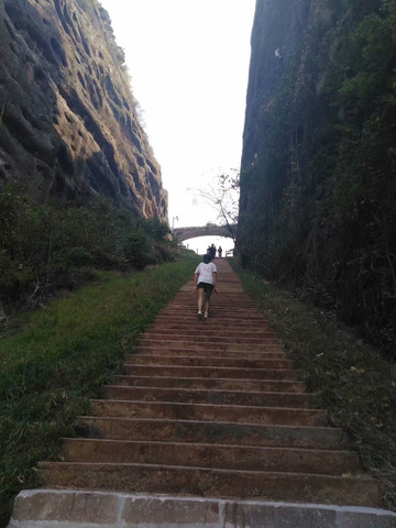这个是高空栈道东门的坡,也是整个栈道最陡的地方,走下这个台阶,很多人便坐车前往桃花州看悬棺表演,然而,却错过了美好的风景。