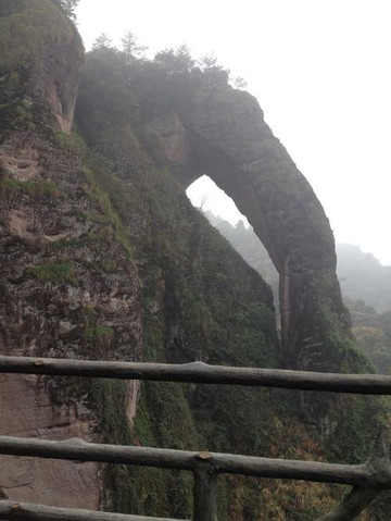 我们常说红配绿赛狗屁,然而,行走在这丹山绿树中,我们既感受到大自然的神奇伟大,很多山是直耸向天的,没有任何坡度,如一片平板拔地而起直送而立。一片片,一座座,那么孤傲而立,任风吹雨淋日晒,触摸那沙砾山体,不禁感慨,沧海桑田原来是这般深重。而那一簇簇绿色,很多是扎根于没有什么泥土的石头上、石缝中,不禁感叹生命力的顽强。