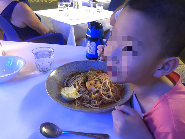 由于父母吃不惯西餐,所以我们还是先回酒店放东西。之后他们在此前往当地比较有名的中餐馆 —— 饺子工坊吃牛肉面去了。而我们三口则来到海边美食一条街,尝了尝当地的西餐美食。来到了网上评论比较好的 Raw Prawn Seafood Restrant 餐厅。儿子点了特别推荐的番茄海鲜意面,老婆点的牛排,我则大胆尝试了澳洲特有的XX肉和XX肉拼盘。他们的菜肴如评价一样,非常好吃而且正宗。而XX肉和XX肉嘛,比想象的要好吃。两种肉都很瘦,肉质纤维要比牛肉还要粗一些,XX肉没有什么骚味,XX肉更加的硬一点。