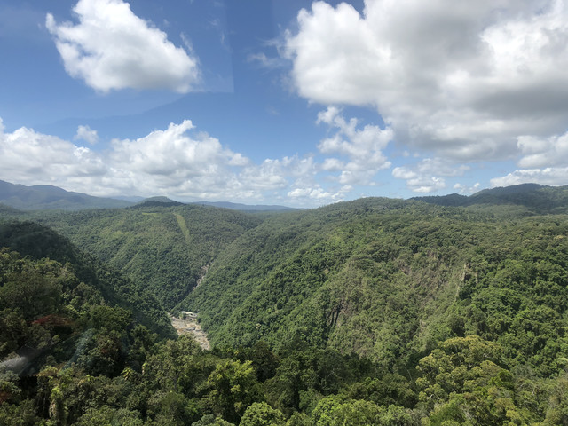 凯恩斯热带雨林是号称自恐龙时代保留下来的原始雨林,由于澳洲是独立于其他六大洲的地区,所以当时的环境变化没有对这块雨林造成太大影响。雨林的终点是名字叫库兰达的一个小镇,来往小镇有多种方式,可以坐公共汽车、火车或自驾,而我们选择的是最常见的旅游线路——缆车,因为只有缆车才能穿过原始雨林,并俯瞰整个雨林的面貌。