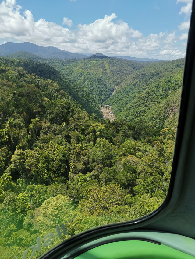 真正踏上去大堡礁的行程,还是有些激动和紧张的,因为出发坐直升飞机去大堡礁是全程英文服务的,而且是头一次坐飞机心里还是有点打鼓的。早上10点半,一个帅气的澳洲小伙来酒店接我们,大众MPV专车服务非常到位,核对信息后上车出发,一路来到凯恩斯机场的直升机停机坪,这里位于航站楼的西边,紧邻跑道。应该说,直升机的服务还是非常到位的,虽然服务人员不会中文,但是很耐心友善,我这种半吊子英语也能基本满足沟通需要,而重要的安全事项有中文的电视讲解,这点非常到位。同行的是两位美国老人,很友善也很乐于交流只可惜英语水平太菜,只能简单的沟通两句,实在是有些遗憾。