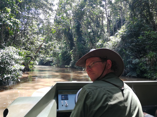 下午集合后,我们集中参观了一个雨林湿地公园,其中最有意思的旅游特色是乘坐两栖登录艇,这些登陆艇是二战时候美军留下的产物,听导游介绍,很多日本团来也都坐这个,感受下70年前敌人的武器,真是非常有意思。开艇的公园管理员一副动植物科学家的感觉,看着就有亲近感,而且全程介绍,遇到特有的动植物还会随时停车给我们指出来,我们遇到了一条蛇还有一个伪装在叶子上的某种昆虫,如果不指出来我们是绝对看不出来的。