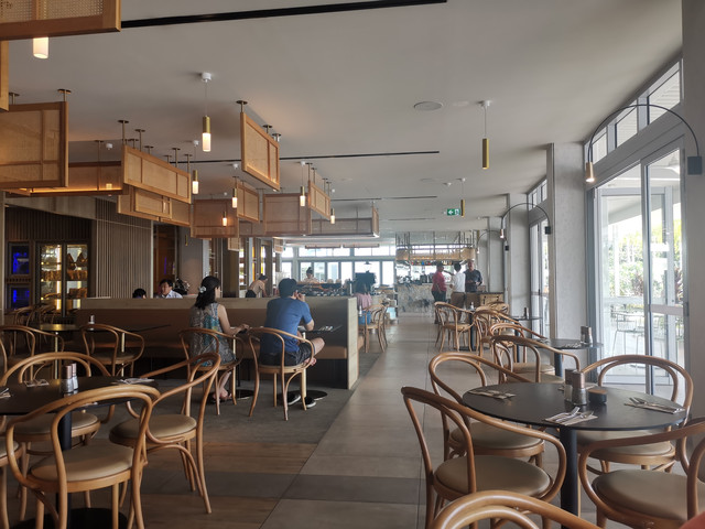 酒店以白色系装修为主,大堂不大但是布置的休闲舒适,两栋楼的客房中间包裹着一个巨大的游泳池,而酒店以街之隔就是大海,此时海风徐徐、波光粼粼,可远眺岛屿与船只,不时有海鸥飞过嘻嘻,此情此景顿时驱散了我们旅途的疲惫,整个神经和状态都不由自主的放松了下来,快速进入到了休闲度假的模式中。