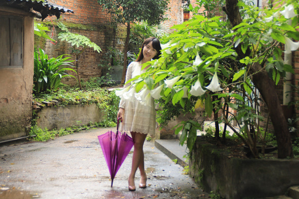 选了一个微雨的周末,超市买了一把紫色的透明伞,约了一个甜美的妹子,就这么出发了!