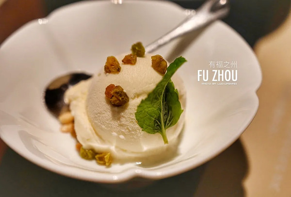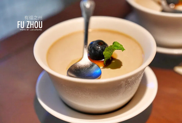 餐前有水果,餐后有甜品,是自家做的茶冻和冰淇淋,配餐的热茶也是自家制的岩茶,把清新福建做进了每一个细节。