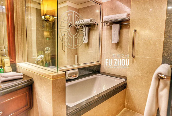 房间的景观非常棒!超大的半落地窗把福州的城景变成了房间里的装饰画!卫生间很大,还有符合人体舒适度的大浴缸!房间内除了基础的五星豪华配置之外,还为客人们准备了有福建特色的茶具,晚上也会在房内备好温热的甜品,服务十分贴心!