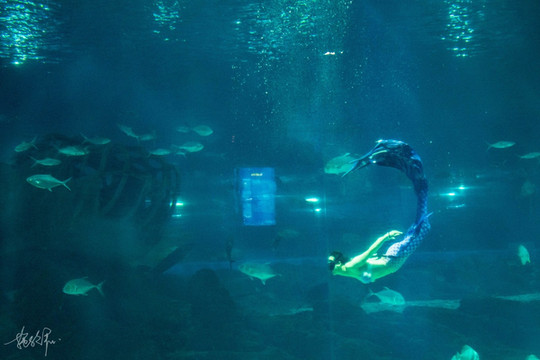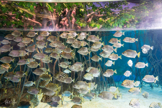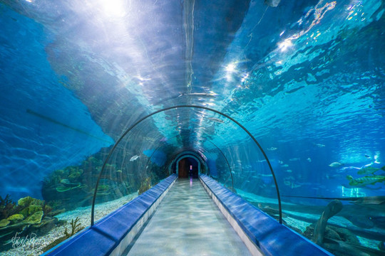 海底隧道应该是大人小孩都喜欢的一个地方,它总是足够梦幻,虽然跟鱼儿们有着一墙之隔,可行走在其中的我仿佛与它们一块儿进入了美丽的海洋世界。