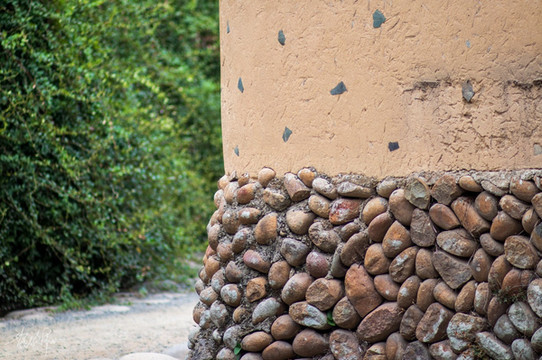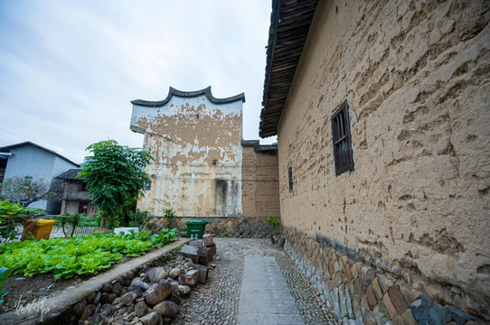 当我被这栋建筑蓝天白云时的照片吸引前来的时候,即便来的时候只是阴天也不觉得遗憾,很值得亲眼一见。院子里可以看到隔壁栋保留下来的风火墙,墙上挂瓦,瓦中有孔,这是古代的人们用来防火防水用的。